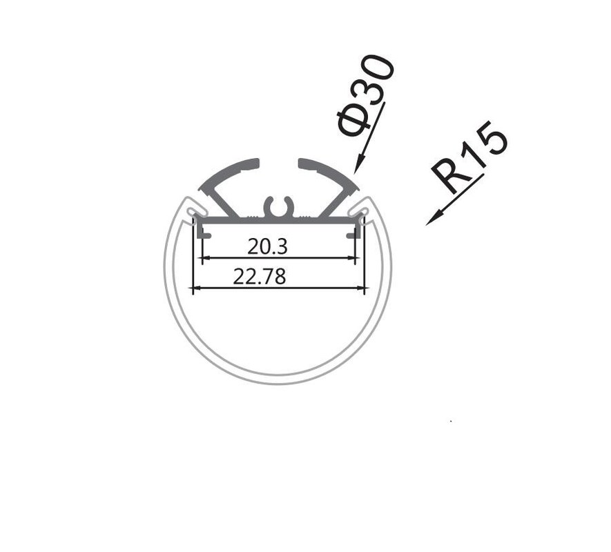 고급 품질 실버 양극 산화 알루미늄으로 만들어져 순환 LED 채널은 또한 탄력적이거나 엄격한 LED 스트립의 방열을 관리할 수 있도록 도와 주기 위한 방열의 역할을 합니다. 물, 먼지, UV 방사, 기상 상태와 다른 불필요한 파괴적 요인을 튀기는 것으로부터 그것을 보호하면서, 순환 LED 프로필은 또한 LED 바 동안 탄탄한 주택을 제공합니다.